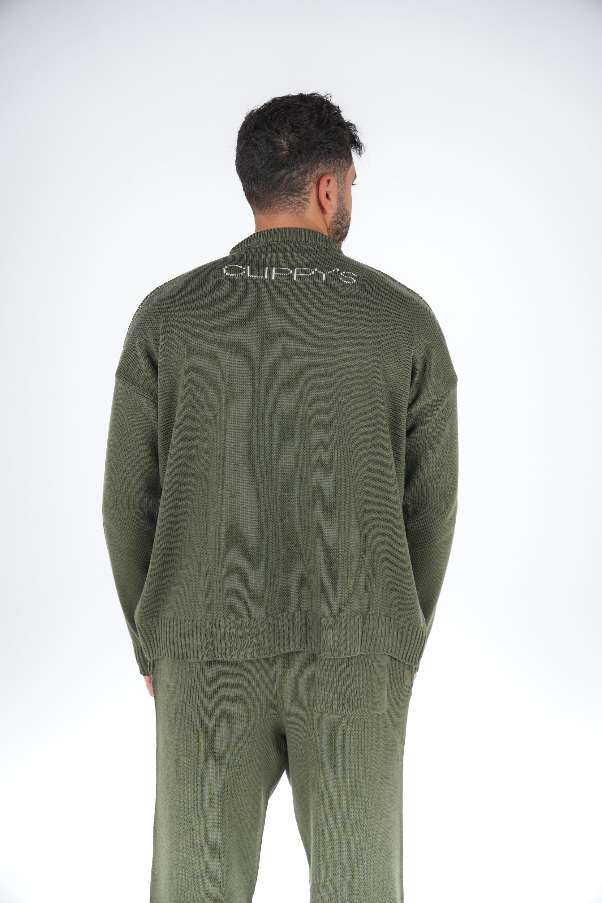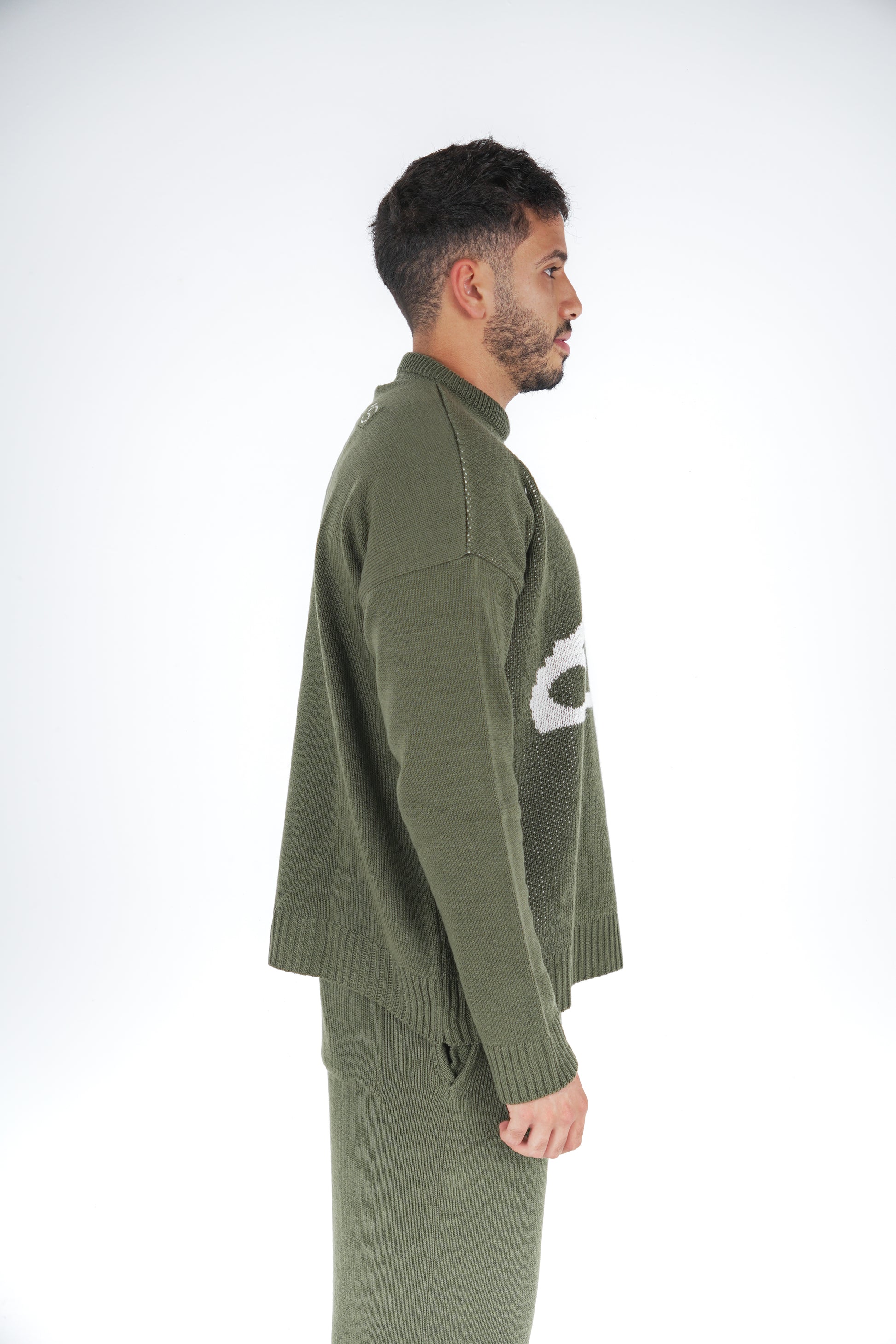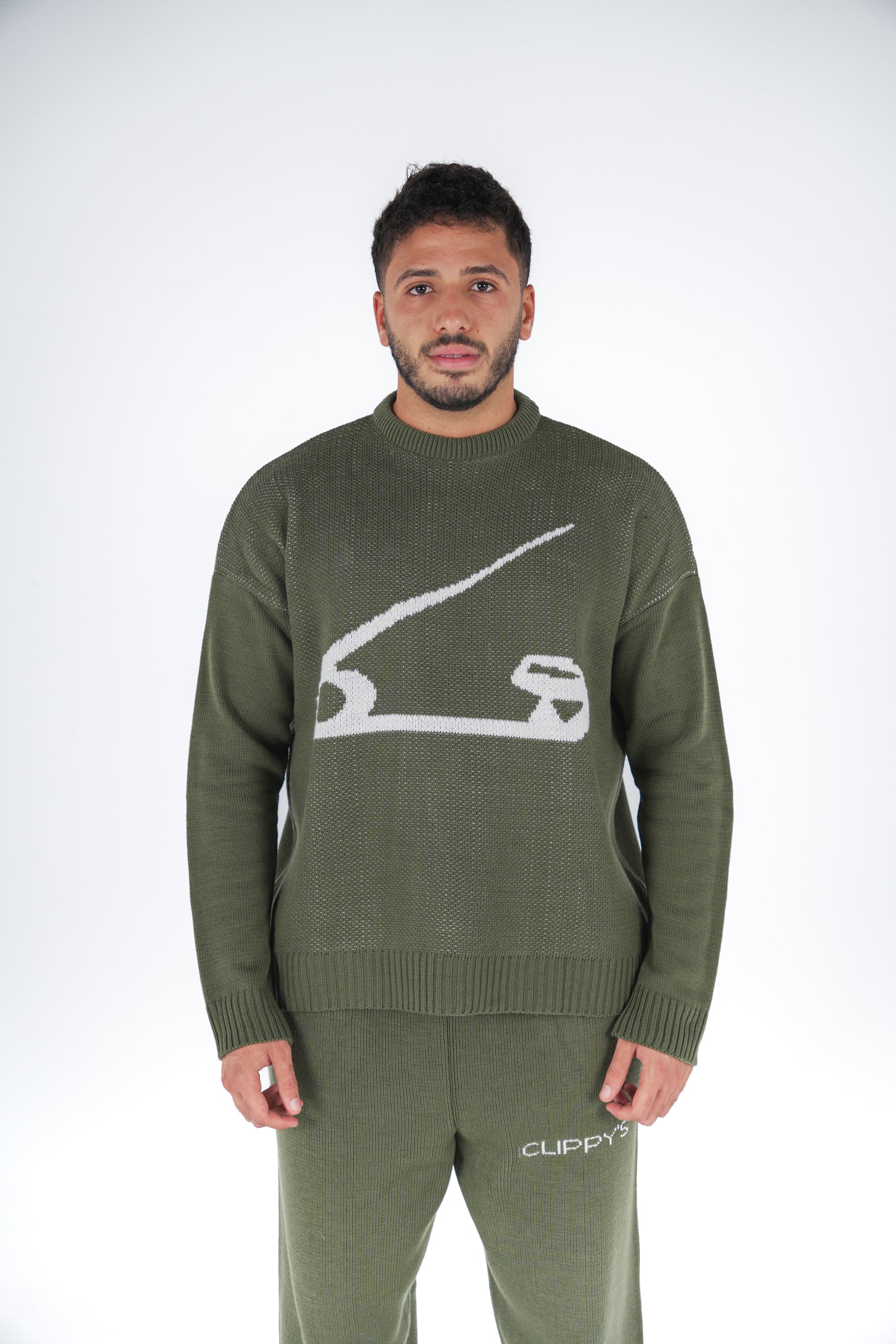 Olive Clip Knitted Crewneck